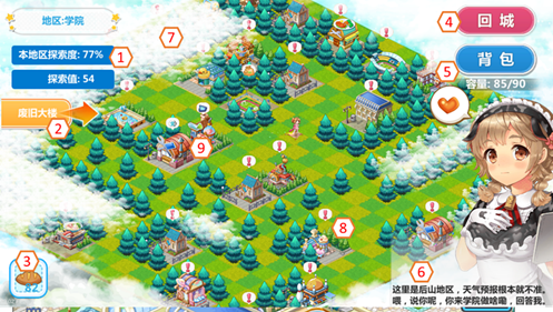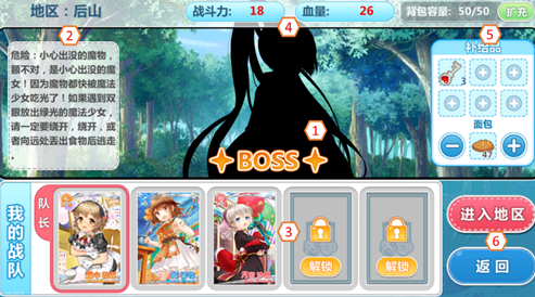 [7]、进入地区:选择后会进入迷宫区域,点击返回则返回学园主界面。