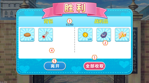 [1]、全部收取:点击后直接收取所有战利品,当背包已满时则会保留部分资源在战利品区域。