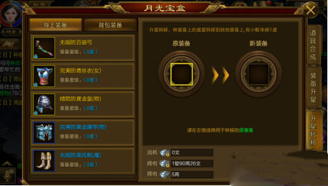 (3)升星转移操作全程无痛、零风险,100%成功,50%几率使新装备获得比原装备低1级的星级,另50%几率将无损转星,即获得与原装备一致的星级!
