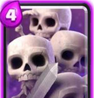 王子流行,单人偷塔的那个年代,遇到骷髅海直接叫爸爸。在三月的时候算是一张神卡,可单防胖子,王子,皮卡,等一切单体大单位。但现在的卡组8张卡必会带一张AOE的进攻卡,骷髅海也渐渐淡出人们的视线,因为太好解了。现在基本遇不到了。