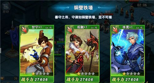每场战斗中,玩家需要战胜一个特定的武将组合(每场战斗的第二阶段会触发特定的武将组合动画),并在限定的时间内摧毁敌方兵营才可取得胜利。