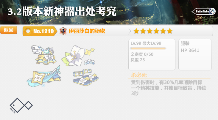 [装备名称]曾经有一款同名解密游戏名为《复仇灵魂2:伊丽莎白的秘密》,不过与这件装备没有什么太大关系。更愿意理解为是维多利亚秘密的梗……
