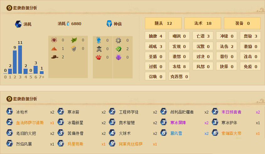 恩佐斯奶骑:由于有大蓝龙的超高斩杀,通常会攒冰箭双冰枪26点斩杀,这样随意火冲几下对面就必须奶了,虽然奶量高,但是频率低啊……打奶骑的时候,血法有时候要配合火球火冲解光螺丝,不然8血很难处理。相比传统冰,有OTK能力的蓝龙冰对奶骑显然有更高的胜率