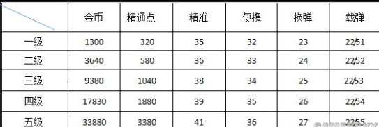 4级天赋;精准+1;便携+1;换弹+1,载弹量+1;