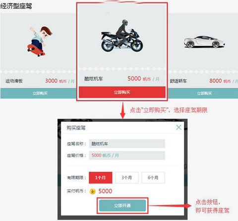 (3)点击座驾栏,可以购买创始会员与座驾