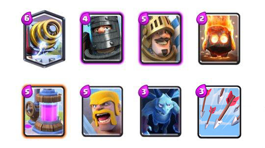 继续这个套路,给予敌人极大的压力,相信很快你就能以三皇冠战绩取胜。不过这套卡牌最大的弱点在于无法很好地处理快速放置的小规模部队,毕竟双王子和电磁炮一旦被围殴基本都只有GG的份。如果碰到这种情况则可以选择集中一条道路发起进攻。这套卡牌另外一个弱点在于对空能力较弱,因此也只能尽可能快地推掉敌人防御塔来取胜了。
