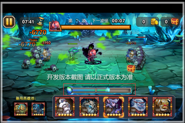 待达到指定能量值时,右边的英雄池亮起,点击某一英雄头像,战场中会出现一片绿色区域,队长大大们可以按照当前怪物侵袭的状况来选择将该英雄安排在绿色区域内的某一位置。