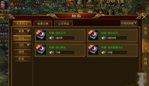 玩家可以在拍卖行进行购买自己需要的东西,或者出售自己不需要的东西。拍卖行出售的东西,玩家只有使用非绑定的银两来交易,绑金和绑银是无法交易的。