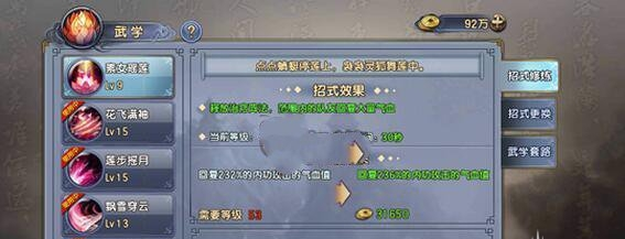 武学即为人物的技能,人物一共可以携带4个技能。每个技能都能升级。技能等级越高,那么自然就越强力,同时也能提升我们人物的战斗力。