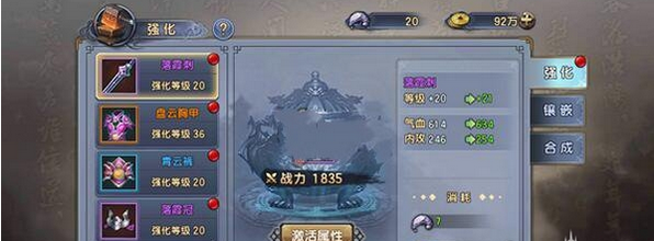 我们的任何装备都是可以进行强化的,强化需要消耗铁矿和金币。装备的强化等级与人物等级相同。所以前期的一些装备我们可以稍微的强化一下,到了后面还是需要换掉的。高等级的橙装才是我们的主力装备。