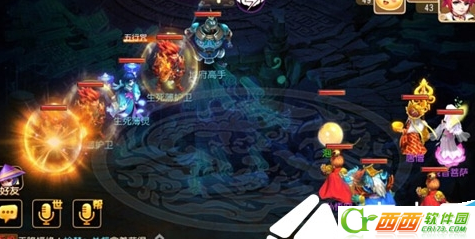此关中间的是生死薄灵是普陀可以回血,左上的地府高手是大唐可以横扫,生死薄护卫是狮驼可以释放鹰击。难点在于生死薄灵可以给别人加血,地府高手大唐上来见谁妙谁,护卫可以释放鹰击就算两个治疗血也加不上。
