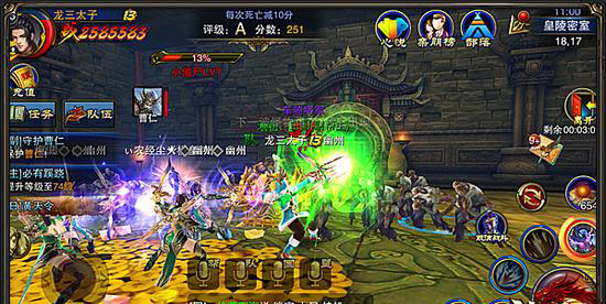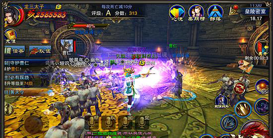 进入皇陵密室副本后,我们就可以开始杀怪。该副本的主要任务是保护秘宝NPC一直存活,副本会刷新一波一波的小怪进攻。副本一共进行4分钟,最终的评分和任务奖励有直接的关系。值得注意的是,每死亡一个人就会被扣除10分积分,杀一个怪加1分。游戏中会不定时刷新老粽子,我们只要集火秒掉,以确保NPC不会阵亡。一旦该NPC阵亡,则视为团灭,导致集体寻宝失败。