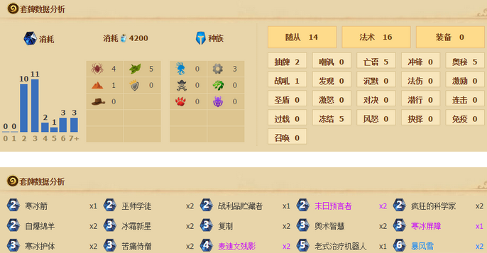 这套卡组前期思路就是苟活,依靠各种控场法术:冰环末日、暴风雪、烈焰风暴等,视频中狗哥也是撑到了自己的疲劳阶段,具体打法大家可以看看视频中狗哥的操作吧!