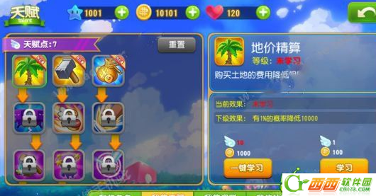 地价精算是大家最新获得的天赋,也是很实用的天赋,学习之后又几率降低购买土地的费用。