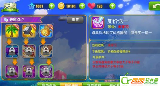 加价送一是任何角色必带的技能,虽然道具的价格会增加,但是会获得两张道具卡,可以给玩家提供不错的机会。