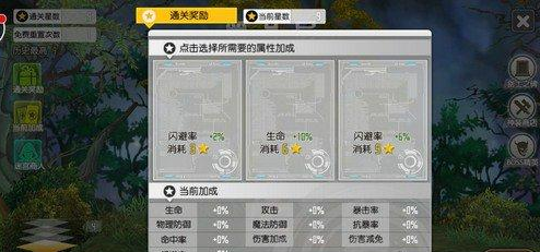 每三个关卡结束后会出现三个加成选择可以供选择,分别是3星、6星和9星。可以根据当前自己已有的星数进行选择,加成对所有出战角色生效。加成选项一共有10种,随机出现三种。