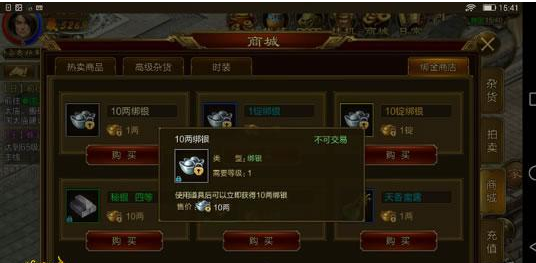 绑金对绑银的购买比例是一比十,虽说绑银在游戏得到的渠道众多,但是如果是战斗型玩家,也可以说是高消费玩家的话,通常有限的绑银并不能满足日常需求; 而对于普通玩家,装备升级绑银消耗也不少,像魂魄石镶嵌,每一次都是大费用,当绑银入不敷出的时候,是消耗银子,还是兑换绑金呢?相信多数玩家都会选择绑 金兑换。对于喜欢砸车,刷功勋的玩家,单人PK必不可免,原地复活是要银子吧,这可是一笔巨大的开支节省呀,按照单月3.3锭的月卡绑金额度,每月可以购 买的绑银可以达到33锭,基本上是可以满足你在游戏中的绑银需求。