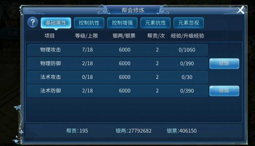 基础属性修炼(增加物理/法术攻击防御)