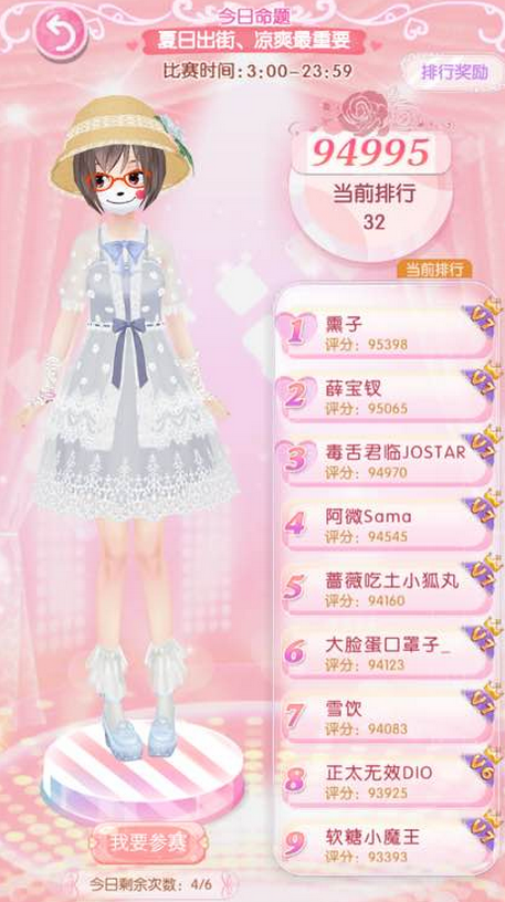 耶嘿,哦嚯啦,关于今天的评选赛主题网小编有话要说~本期主题为夏日出街凉爽最重要,在今日日评属性里:清凉占评分比最高接着是甜美日常最后是现代。