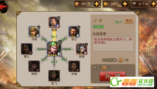 刘备加可以加快士兵升级,孙尚香可以依靠士兵等级输出,魏延可以依靠士兵等级输出,法正可以依靠士兵等级输出,鲁肃可以将目标防御力并使高等级士兵集火目标。