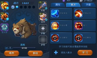 点评:黑熊的攻击不高,就是防御血量比较强,技能也没有特别突出的方面,玩家当成过渡宠就可以了。