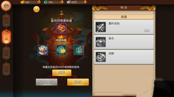 3个九眼天珠有较小的几率可以合成一件橙色召唤兽装备