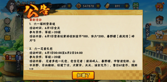 今天小编给大家带来的是火影忍者这款手游,今天是个特殊的日子6.1儿童节,祝大家儿童节快乐!今天也迎来了火影忍者的6.1活动,下面就由小编给大家介绍下吧!