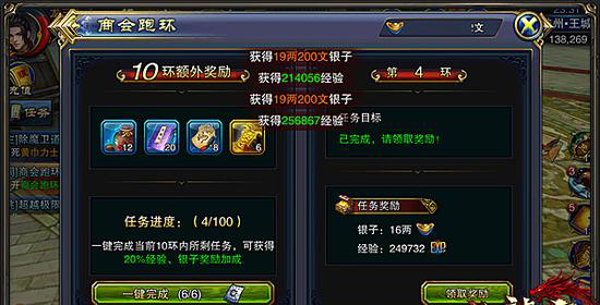 在商会跑环界面接取任务和奖励,完成任务后可获得大量的银子。需要补充说明的是,这个活动只有每天的前二十次才能获得高额奖励。如果大家的时候不是很充足的话,那么做完二十环就可以停止。