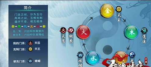 天忍的五行属性为火,也正和其的自身技能搭配,在五行相克中水克火,火克金,金克木,所以从五行相克来说,峨嵋是天忍的死敌,天王完全压制。