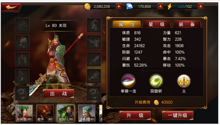 猎魔神将新手玩法之武将系统介绍,三国乱世,传言得神将者得天下,江湖豪杰群起争逐,一统天下,招募神将。游戏中每个神将不但具有自己特殊的技能,还有特殊的属性,有的高攻,有的高防,对于角色是战士的玩家来说选择高攻的武将来培养是最合适不过的了!西西让大家详细讲解下猎魔神将新手玩法之武将系统介绍,