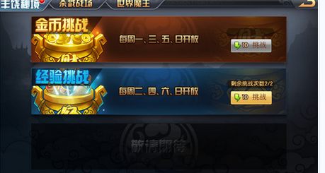 在限时活动中的经验挑战,本系统每次可以挑战两次。每周二、四、六、日开启。