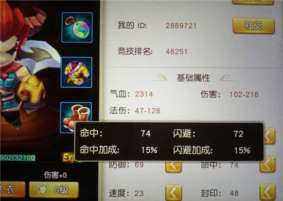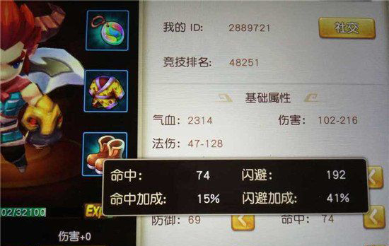 当我们打上一个5级神秘石后,闪避属性跟闪避加成都发生了变化