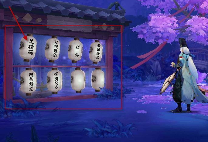 现在,睁大你的眼睛看灯笼上的字,是不是有大大的“兑换码”三个字。点击即可输入手中的码了。