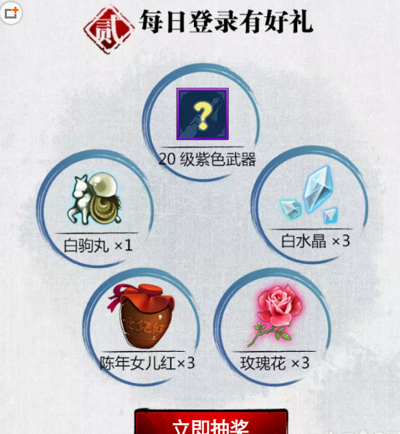 2、活动期间,用户创建角色可领取好礼,每日登录可获得抽奖机会一次