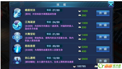 3.慈航普度:为周围伤血量最多的队友回复生命(关键时候可救命的),另外如果组队加血不给力,我想只会坑队友,施放距离1000,冷却时间40秒。