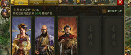 1、在祭祀达到24次之前不要进行祭祀,一直升级城内建筑,等到建筑等级上去后再逐次使用祭祀,切忌一次用完。每升一级都会提供新的祭祀次数,确保祭祀次数不要超过25,同时越晚使用资源越多。