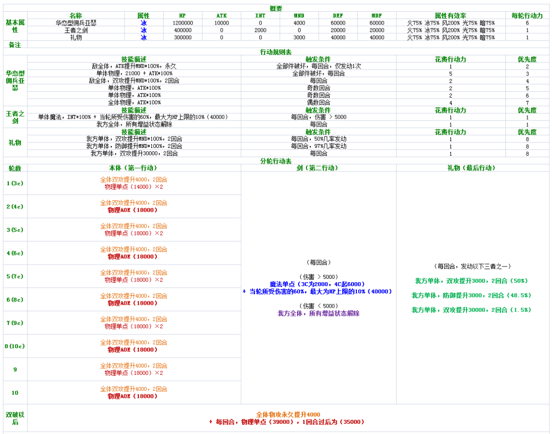 本体奇数回合是两枚物理单点,偶数回合则是一枚物理AOE。