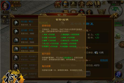 暗杀太子、搬砖、刺探敌情、王城运镖这些任务都是玩家积累获取功勋的,但是功勋数值有限,但是这些任务除了功勋还有大量的经验值,是一定要完成的。