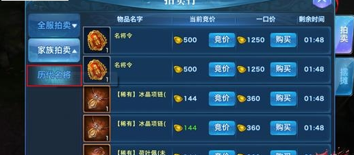 大口喝酒,大块吃肉,按秤分金银,这是最豪情的武侠场面。拍卖行将这豪情背后的琐碎化简为零。参与“武林盟主”、“历代名将”等活动获得的稀有物品自动进入“家族拍卖”,家族流拍的物品会进入“世界拍卖”,不管卖出与否家族都会获得起拍价对应的元宝。所有家族拍卖和世界拍卖获得的元宝会由参加活动的家族成员平分。