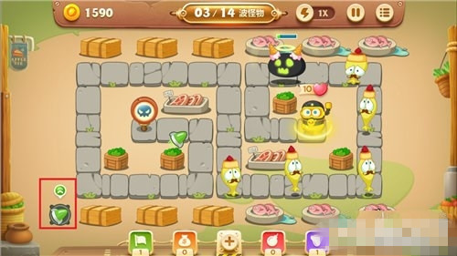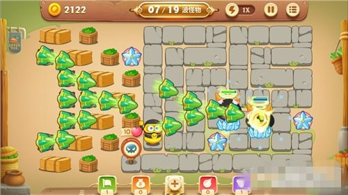 导弹炮塔不但战斗范围大,它的攻击力也十分优秀。单个导弹基本上7、8次攻击就能打掉一个大型怪物。更重要的是,它的攻速不慢,还有自动攻击最远怪物、只要怪物存在就不会停止攻击的特性。搭配冰冻星星等减速炮塔使用,导弹炮塔的实力能发挥到最大,无论是冒险关卡还是糖果赛,都相当实用。
