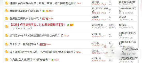 2、暗箱操作,信息不透明。游戏上线以来官方从来没有一篇关于族长返利的公告,玩家们都并不清楚到底返利的比例是怎么样的。