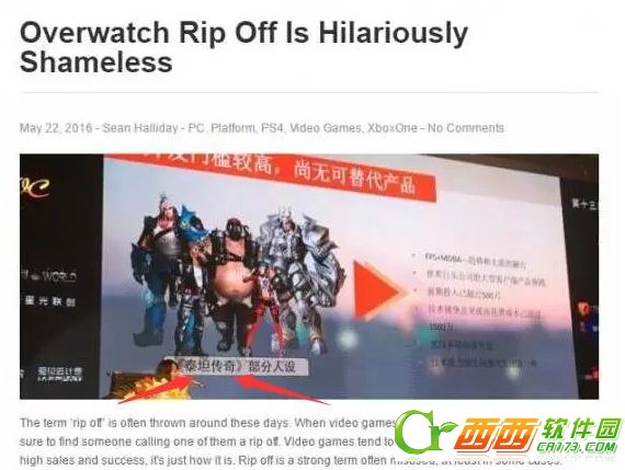 让游戏陀螺感到震惊的是,这个消息在国内尚未传开却已经被外媒发现。从外媒公布的截图上来看这款游戏叫做《泰坦传奇》,不论是画面还是游戏中的角色,几乎和暴雪的《守望先锋》如出一辙。在明天《守望先锋》就要在国内上线的这个节骨眼上,出现这样一款游戏,似乎太过巧合,而这样的事件好像也似曾相识。