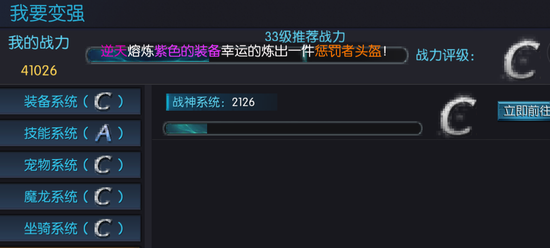 玩家可以对战神来进行升级,战神等级越高则战神系统的评级越高。