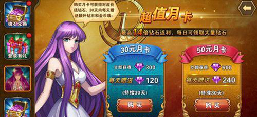 和大多数游戏类似,圣斗士星矢重生也会有很多游戏中的运营活动,比如首充送什么,充满多少又送什么。我所在的大区活动中有购买月卡送首充礼包的活动,再看了礼包价值之后,果断充值了30元月卡和50元月卡,光荣加入双月卡大军。