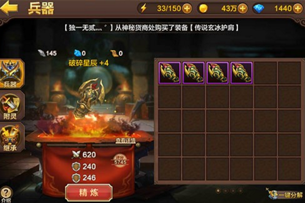 同等级S级兵器之间可无损继承精炼等级,继承只能由高精炼等级向低精炼等级进行