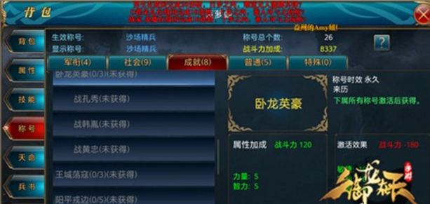 如此之多的成就称号中,封印称号不是获得就能有属性加成,需要激活属性才能获得属性加成,其中160级天命勇士激活效果是战斗力增加11640,力量和智力均增加500点。其余称号均是获得称号便有属性加成。