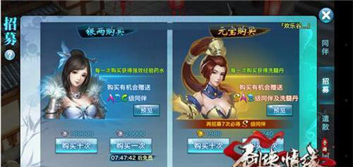 十连抽分为银两购买和元宝购买两种,银两购买每一次必定获得强效经验药水,随机获取A、B、C级伙伴;元宝购买每一次必定获得洗髓丹,随机获取 SS、S、A、B、C级伙伴。虽然用单次元宝招募,满10次之后必定获得一个S级的同伴,但用十连抽可以少花420元宝,不管你是土豪还是平民,节省下来都是一笔不小的财富。