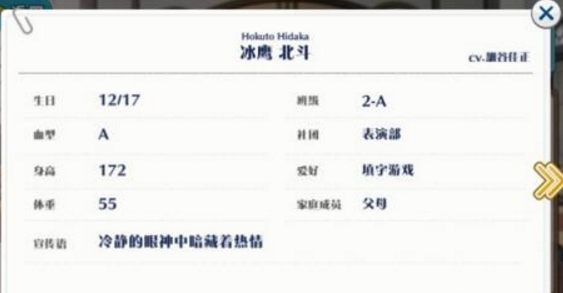 冰鹰北斗的个人魅力宣言是:冷静的眼神中暗藏着热情。看来这位偶像的内心并不是像外表那样看上去有些冷冰冰的呢,也许还有热情的一面哦。