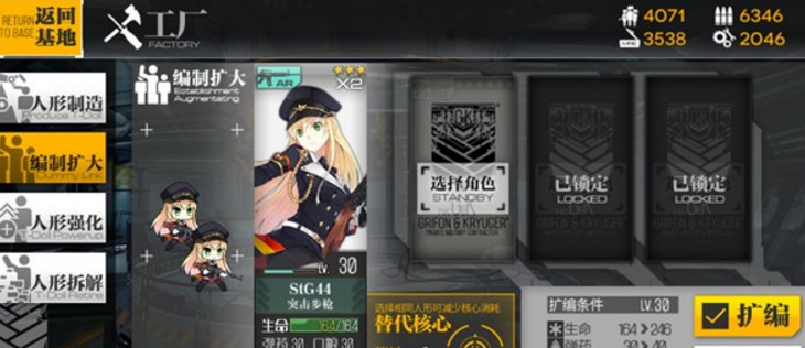 扩编需枪娘达到指定等级,扩编需消耗替代核心,也可用同款枪娘替代,扩编后枪娘作战效能大幅提升,战场上出现“分身”一起作战,编制越大“分身”越多。