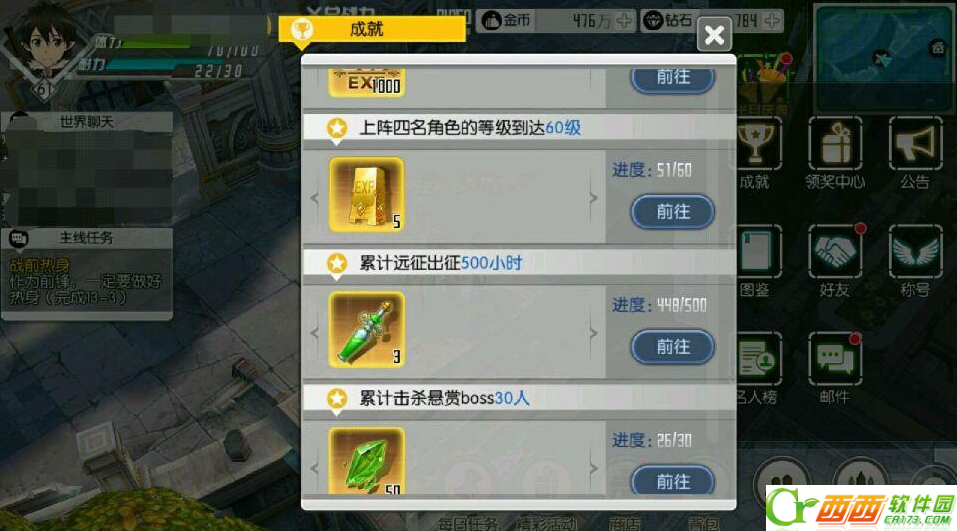 10、成就任务累计远征时间可获得耐力药剂,副本星数可获得体力药剂。